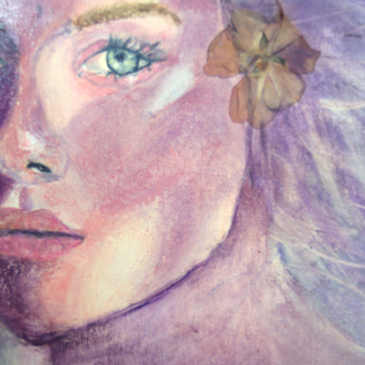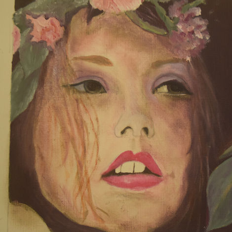 This is one of my largest paintings. I wanted to challenge myself and see if I liked painting on a larger surface. The image is so large that I feel his eyes on me everywhere in the room.